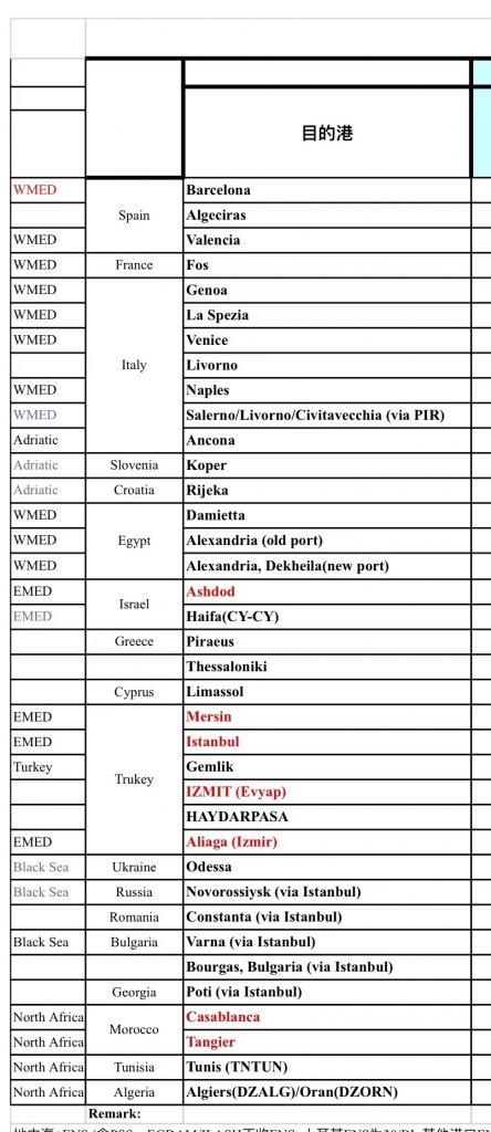 货代业务必备 厦门港优势报价表 厦门港出口,有需要对比报价,可加好友报价给做参考。 公司优势航线和港口欧地非,东南亚,船东(ONE.EMC.PILCOSCO)等。 关于专业性的知识也可加好友咨询,欢迎各大同行询问对比给您一个透明的价格。 QQ号:2881284249 微信号:jushayu 优势点,可报价,只需提供港口等信息即可,图示ONE主要到达点港口。