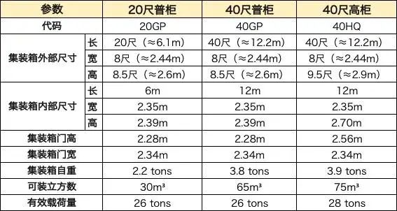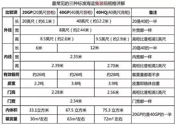 20GP、40GP和40HQ是三种最常用的集装箱