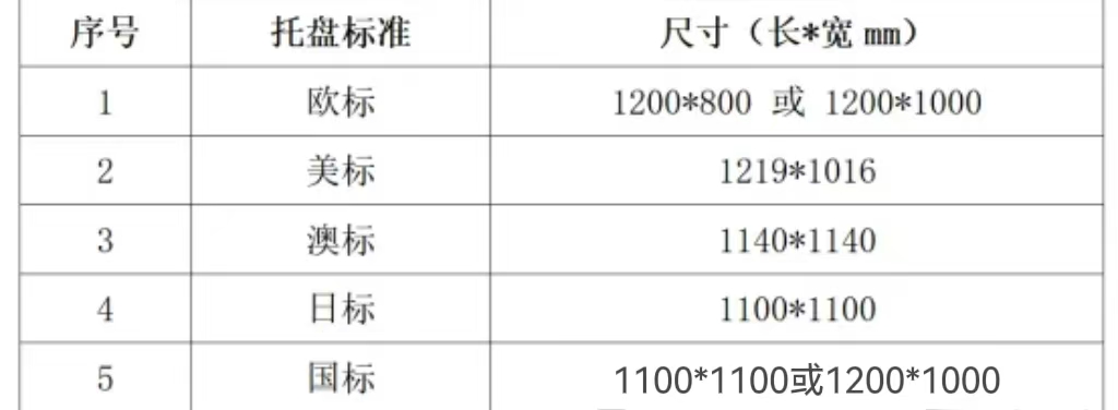 托盘运输最大的优势就是便于装卸搬运,通过缠膜和捆绑带的加固,在起到防潮作用的同时,也进一步降低货损货差。根据国际标准化组织(ISO)的规定,标准托盘规格大致分为以下几种: